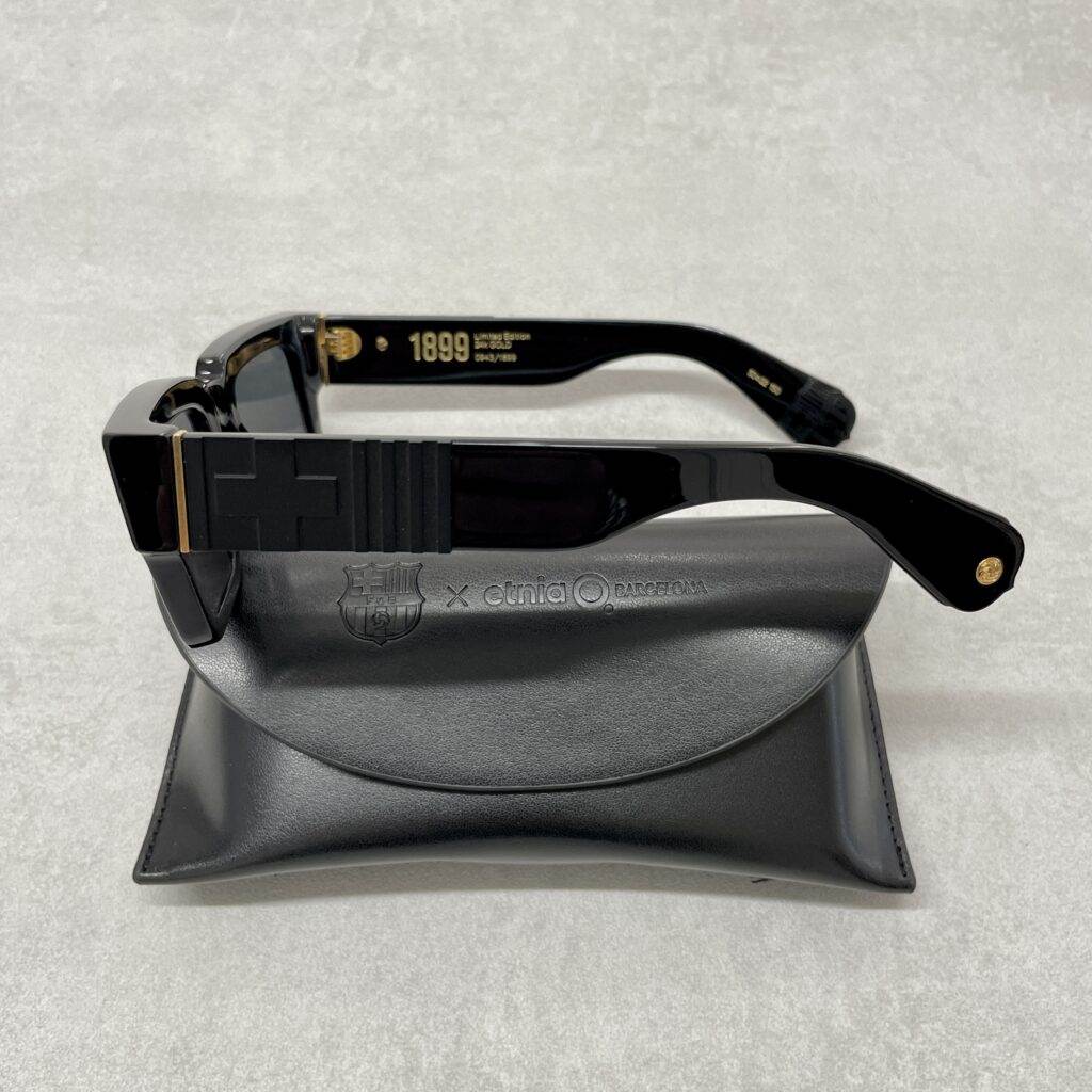 Un modello in edizione limitata numerata in serie, con un design che ricompone lo stemma del Barça sulle aste, per creare un occhiale esclusivo in potente acetato nero e dettagli in oro 24K. Anche questo proposto con lenti in vetro polarizzate HD, personalizzate dall’incisione laser del logo di Etnia Barcelona e dello stemma del club spagnolo.